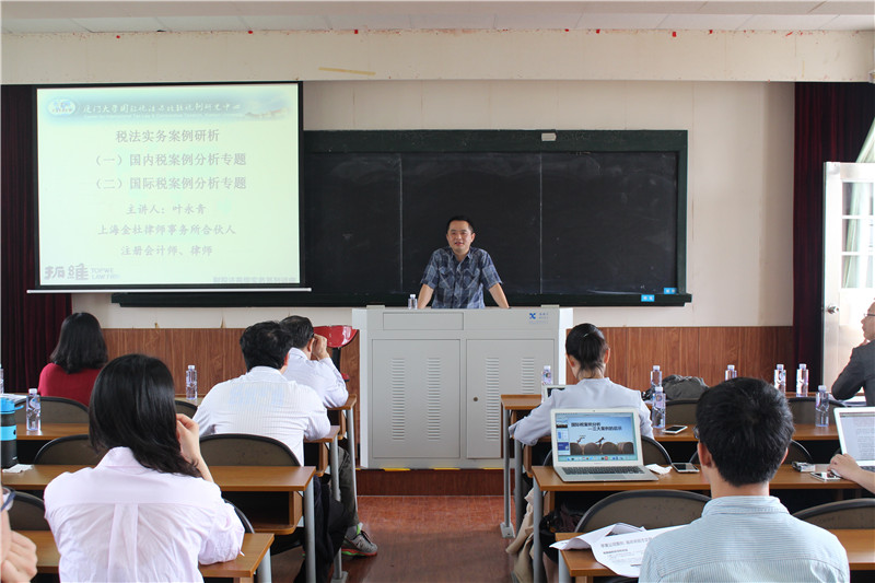 2017年4月8-9日,由厦门大学国际税法与比较税制研究中心(CITACT-XMU)与福建拓维律师事务所联合举办的“厦门大学‘拓维’财税法高级实务系列讲座”第24-27讲“税法实务案例研析”在yl8cc永利官网A302教室顺利举行。本场讲座有幸邀请到上海金杜律师事务所合伙人叶永青律师担任主讲人。德勤华永会计师事务所厦门分所税务总监吴焕琛先生、高级经理乔彬彬女士和高级税务顾问卢静函女士也应邀参加了8日上午的讲座。