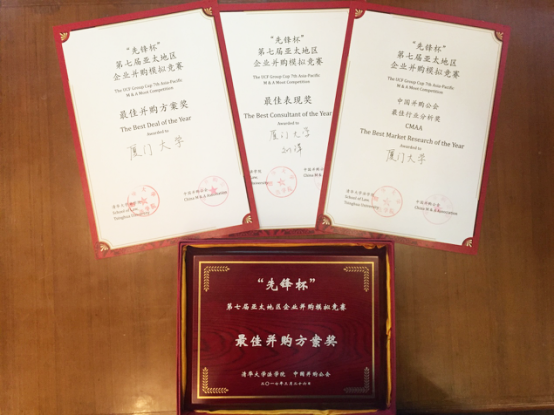 3月23日至3月27日,“先锋杯”第七届亚太地区企业模拟并购竞赛在清华大学举行。此项竞赛由清华大学与中国并购公会共同主办,并得到先锋集团与尚融资本的大力赞助,也得到十多家企业、媒体的支持。这一赛事是亚太商法学界、各高校及企业并购界的年度盛事,其大致内容为:各高校队伍分别代表一家真实存在的企业,与指定的交易方进行模拟并购磋商并做最后的现场展示。该竞赛之雏形为台湾政治大学法学院与商学院共同开设的“企业并购实例研习”课程,并于2011年由台湾政治大学、清华大学及中国人民大学法学院共同将其发展成为一项赛事。此后每年举办一届,至今已成功举办六届。在此过程中,两岸三地的众多知名高校陆续收到邀请,厦大亦有幸成为其中一员。目前该竞赛已发展成为一项由12所名校共同参与的亚太地区性赛事。而本次比赛,来自两岸三地12所高校经、管、法不同专业的72位学子齐聚清华园,围绕着并购方案、谈判、行业分析和法律、估值、税务等方面展开了巅峰对决。
