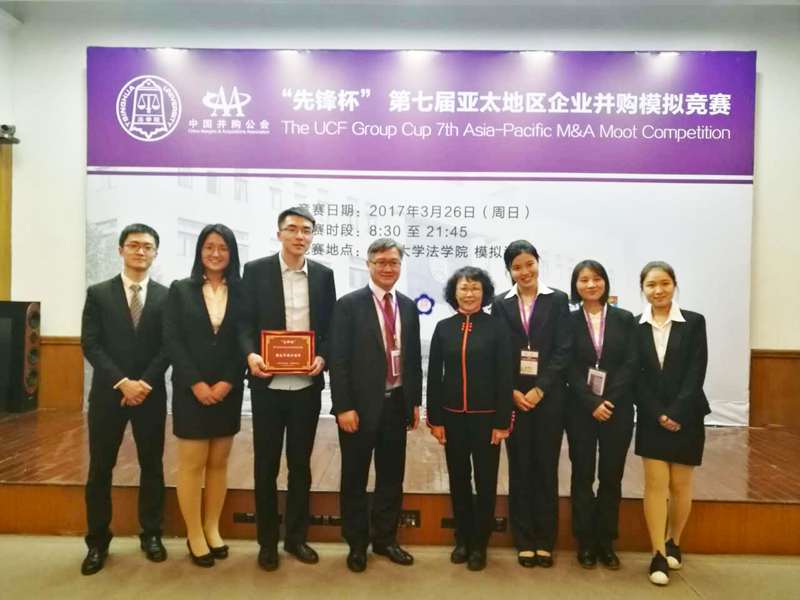 本届参赛队由2016级管理学院财务学系硕士生杜时磊、成佳璟,2016级民商法学硕士刘洋、蔡茜光,2016级法律硕士唐峤荻、林倩豪共六人组成,由yl8cc永利官网朱炎生教授带队。虽然专业背景不同,但六位队员各自发挥所长,为我校夺取了模拟并购竞赛的荣誉。