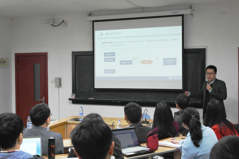 接着,他重点为同学们介绍了“广发恒进—南方水泥租赁资产支持专项计划”的案例,该专项计划是国内首单资产证券化服务机构出现资金问题的实例。在完成这项工作的过程中,他面临准备款已到位项目却被叫停等诸多困境。由此刘总感慨颇多,“从事这个行业面对很多不确定性,要求从业者要有强大的抗压和心理承受能力以及强健的体魄”。