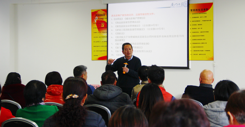 本次讲座的主题为房地产租赁法律问题探讨。黄健雄教授结合多年的教学经验和工作实践,着重介绍了房屋租赁合同内容、房屋租赁登记备案、群租房等问题,深入分析了房地产租赁的法律、法规等规范性文件。授课的同时,也就居民提出的问题一一给予详细的解答,为曾厝垵社区居民提供了有益的法律参考意见。