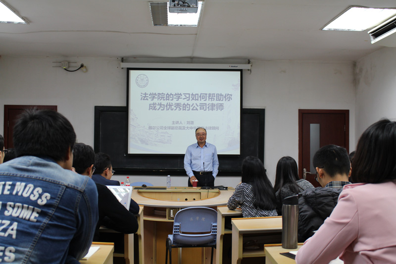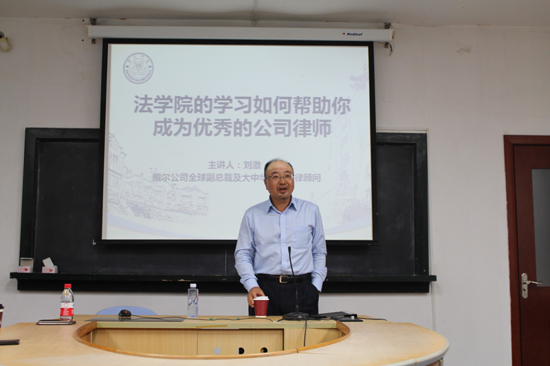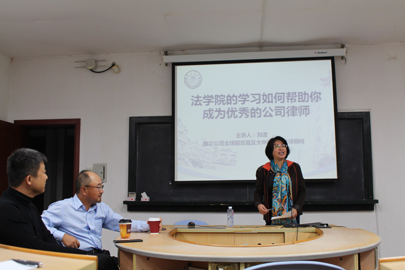 2017年1月11日晚19:00,一场主题为“yl8cc永利官网的学习如何帮助你成为优秀的公司律师”的专题讲座在永利官网B520举行。本次主讲人为戴尔公司的全球副总裁及大中华区总法律顾问刘激先生。永利官网何丽新老师也参加并主持了本次讲座。