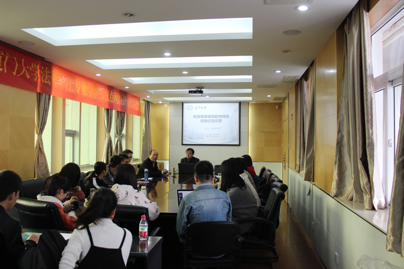 2016年12月24日上午9:00,北京大学法学院党委书记、副院长,全国法律专业学位研究生教育指导委员会委员,中国法学会民事诉讼法学研究会副会长潘剑锋教授为永利官网师生带来了“民事再审程序的特殊性和独立性反思”专题讲座。讲座在yl8cc永利官网C419教室举办,吸引了永利官网本科生以及硕士、博士研究生积极参加。诉讼法教研室的齐树洁教授和张榕教授参与了讲座。