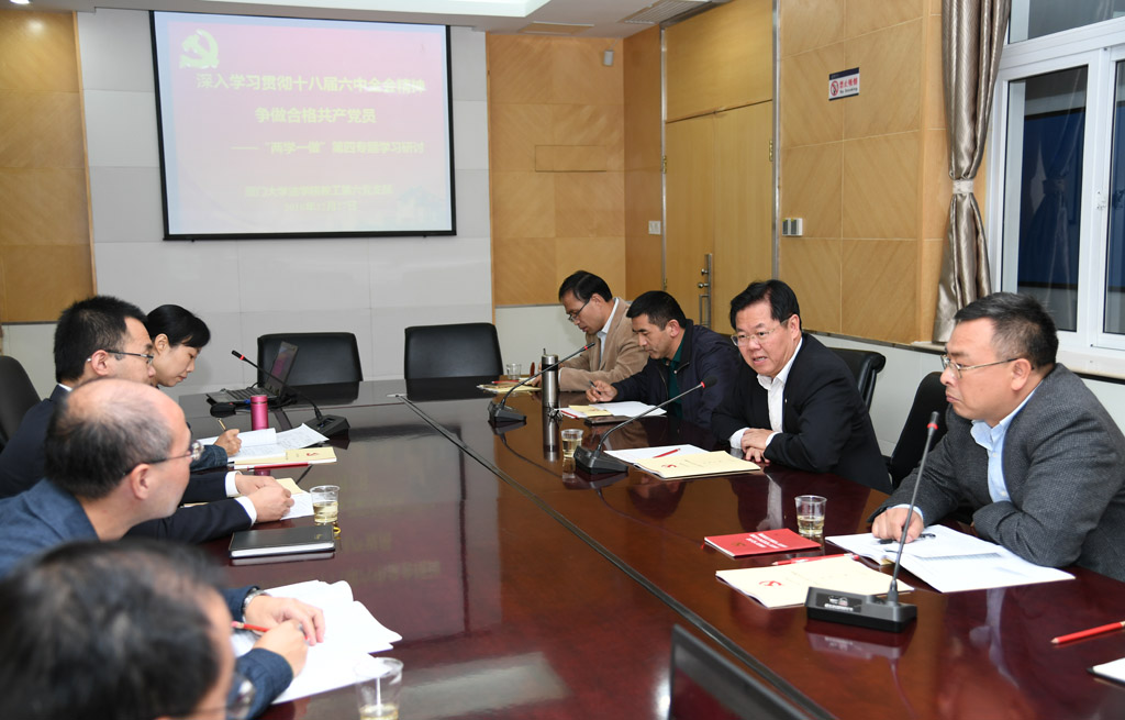 12月27日下午,yl8cc永利官网教工第六党支部在C419会议室举行“深入学习贯彻十八届六中全会精神 争做合格党员——‘两学一做’第四专题学习研讨”。厦门大学校长朱崇实做为支部党员参加了学习研讨并点评,校“两学一做”学习教育第三督导组组长郑建华,yl8cc永利官网党委书记李智勇、党委副书记郭锦星参加活动。会议由党支部书记朱晓勤教授主持。