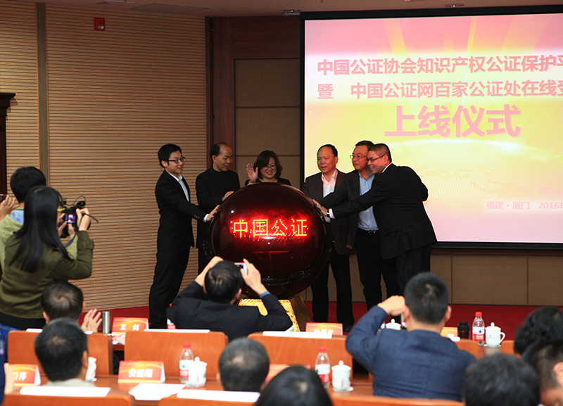 中国公证协会知识产权公证保护平台是根据《国务院关于新形势下加快知识产权强国建设的若干意见》的要求,落实司法部牵头工作任务,在中国公证协会指导下,由厦门大学公证法律与信息化研究中心、厦门市鹭江公证处、厦门大学知识产权研究院承担理论研究,厦门法信公证云科技有限公司负责技术研发的课题。此次“知识产权公证保护平台”上线,标志着公证法律与信息化研究中心的理论成果向实操技术平台的成功转化。