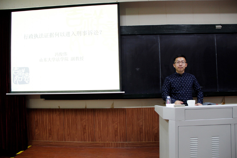 2016年12月10日晚7点,以“行政执法证据何以进入刑事诉讼”为题的讲座在yl8cc永利官网A302教室成功举办,来自山东大学法学院的冯俊伟副教授为到场聆听的师生们献上了一场精彩的学术讲座。永利官网吴旭阳老师、刘学敏老师参加了本次讲座。讲座由吴旭阳老师主持。