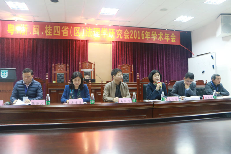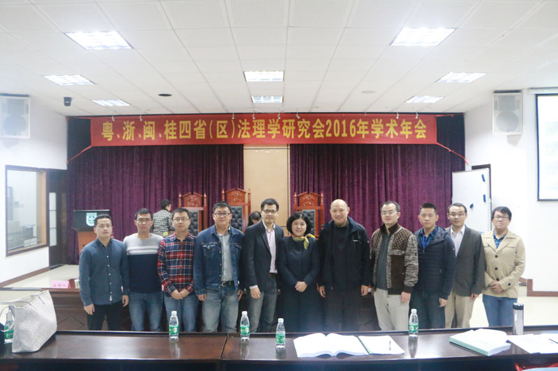 11月26日,“全面依法治国与法学方法论革新”学术研讨会暨浙、粤、闽、桂四省(区)法理学研究会2016年学术年会在广东财经大学举行,来自闽浙粤桂四地高校与实务部门的专家、学者、研究生等100多人参加了年会。与会专家学者围绕“全面依法治国与法学方法论革新”主题,分别就“地方治理的宏观路径与具体方法”、“司法改革的现实经验与方法论基础”、“法学研究整体化的实践与反思”、“法的社会科学研究与法学方法论”、“‘权利本位’的再讨论与法学方法论”等五个专题进行交流研讨。会议共提交论文71篇,有20位高校与实务部门的专家学者研究生就各自的研究成果作主题发言。