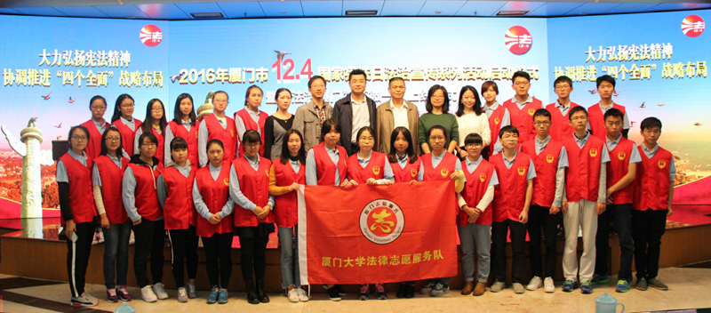 4日上午,厦门市“12.4”国家宪法日法制宣传系列活动在厦门日报社报业大厦隆重举行。市委政法委书记李伟华、人大常委会副主任陈紫萱、副市长林锐、市政协副主席陈昌生,厦门大学校团委书记陈怀锋、yl8cc永利官网党委副书记周蕾及厦门大学法律志愿服务队代表等出席活动。
