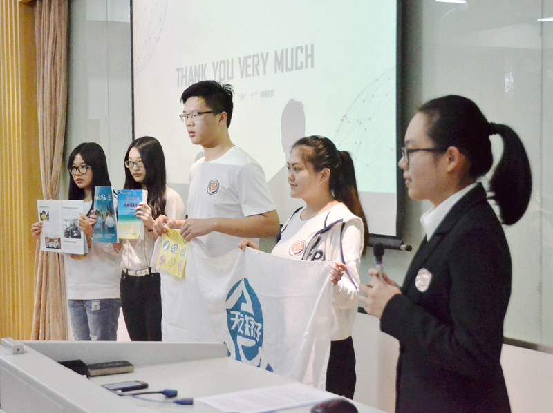 在此环节中,实践组都通过精美的PPT和简洁的表述向大家展示了小组的调研考察情况。各个小组首先介绍了自己的团队建设,包括团队成员、带队老师以及队徽、队服、队旗等。其次针对调研课题,从调研背景、目的、过程、成果、结论等方面进行了展示。