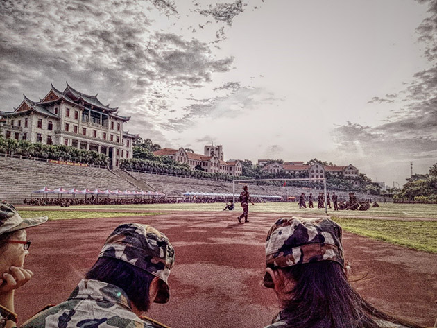 站军姿,走正步,行军礼……我们从稀稀拉拉到整齐划一,从偶开小差到全神贯注,团队意识渐渐树立。一遍遍的重复温习只为打造更加优秀的厦大人。雨前的闷热逼得汗水不断淌下,虽衣裳已湿,但我们的热情依旧饱满。教官循循善诱,尽心尽力,让我们感叹军人的热血与柔情。我们全力以赴,众志成城,信念与信任紧密结合,坚定与坚持相辅相成。正如校训所云:自强不息,止于至善,一支支稍显稚嫩但精诚团结的队伍正在形成……
