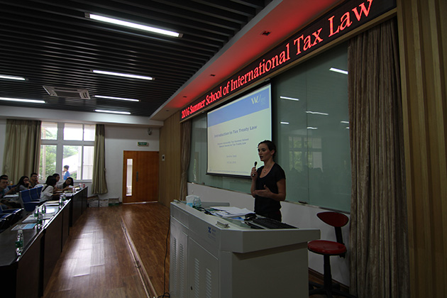 Karoline Spies老师介绍了近年来维也纳经济大学奥地利与国际税法研究中心在推动国际税法教学与科研方面做出的努力,并代表维也纳经济大学奥地利与国际税法研究中心对此次暑期班的成功举办表示热烈祝贺,希望今后双方能在国际税法教学与研究方面开展更加深入的沟通与交流。