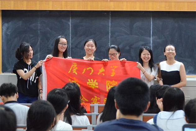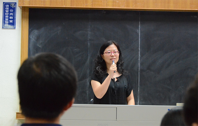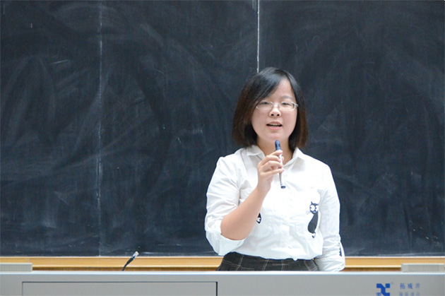 2015年暑期社会实践优秀实践队代表吴茜同学为大家介绍了她所带领的校优秀实践队不二法门队的宝贵实践经验。