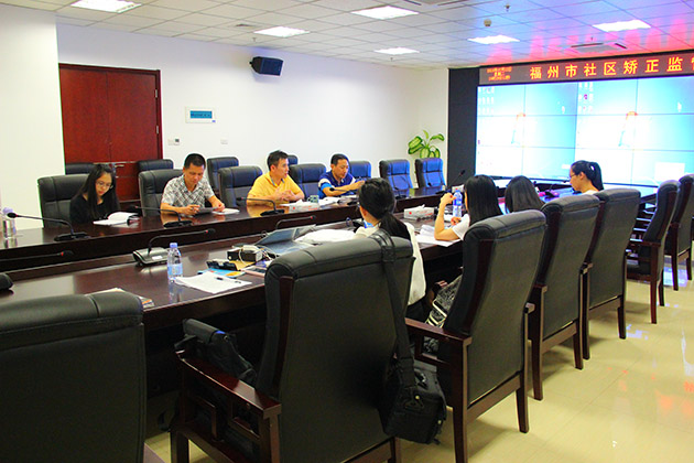 座谈会在福州市社区矫正监管指挥中心进行,福州市社区矫正管理局林辉局长、福州市社区矫正管理局李振霞主任、福州市鼓山区司法所周文俊所长,及社区矫正监管指挥中心的几位工作人员,出席本次座谈会。调研队员们从立法与法律规范、矫正措施与实施问题、教育与培训三方面展开此次座谈。