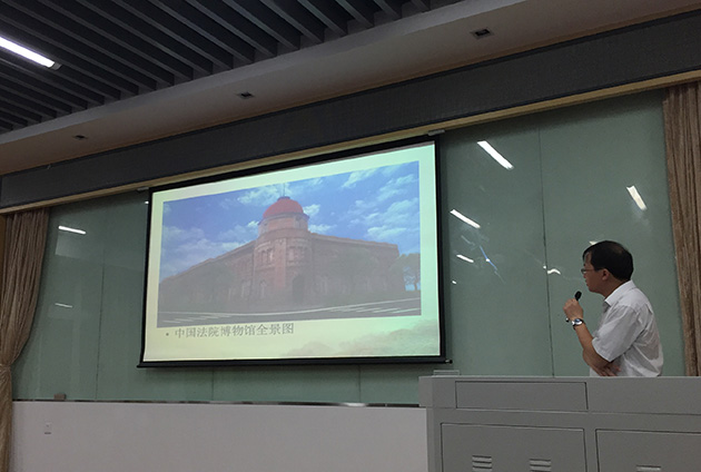 欲知大道,必先为史。2016年6月30日晚,厦大信实论坛之“如何将法治的灵魂装到一栋古建筑中——中国法院博物馆布展思路及部分珍贵法治文物简介”在永利官网B137室顺利举办。讲座由最高人民法院中国法院博物馆创馆人员、文物处负责人王江龙老师主讲,法律史教研室吴旭阳老师主持。厦门市思明区人民法院副院长张嵘法官、厦门市中级人民法院行政装备处处长郑金雄法官、厦门市中级人民法院研究室副主任黄鸣鹤法官、法律史教研室主任周东平教授参与座谈,法律史与法学理论专业硕士生及外专业学生到场聆听。