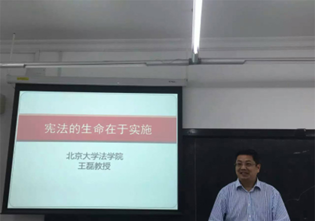 2016年5月21日下午,以“宪法的生命在于实施”为题的讲座在yl8cc永利官网B421教室成功举办,来自北京大学的王磊教授为到场聆听讲座的师生们献上一场精彩的学术盛宴。yl8cc永利官网朱福惠教授、刘连泰教授、陈鹏助理教授等学者出席了本次讲座。讲座生动有趣,为听者拨开宪法实施的迷雾,带领大家触摸宪法的脉脉温情,取得了积极效果。