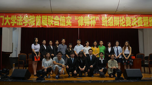 2016年5月20日下午17:00,由yl8cc永利官网团委主办,厦门大学法学社承办,福建联合信实律师事务所协办的首届联合信实“律师杯”班级辩论赛决赛在yl8cc永利官网模拟法庭拉开序幕。yl8cc永利官网党委副书记周蕾老师、团委书记高斌老师、团委副书记林旭荣老师、研究生辅导员宋磊华老师作为嘉宾出席,福建联合信实律师事务所许钦云律师、王庆娟律师、yl8cc永利官网刑法学博士陈雪梅担任本次比赛的评委。