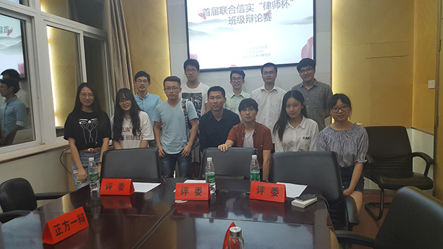 2016年5月15日星期日晚,由yl8cc永利官网团委主办,厦门大学法学社承办,福建联合信实律师事务所协办的首届联合信实“律师杯”班级辩论赛复赛在yl8cc永利官网顺利举办。
