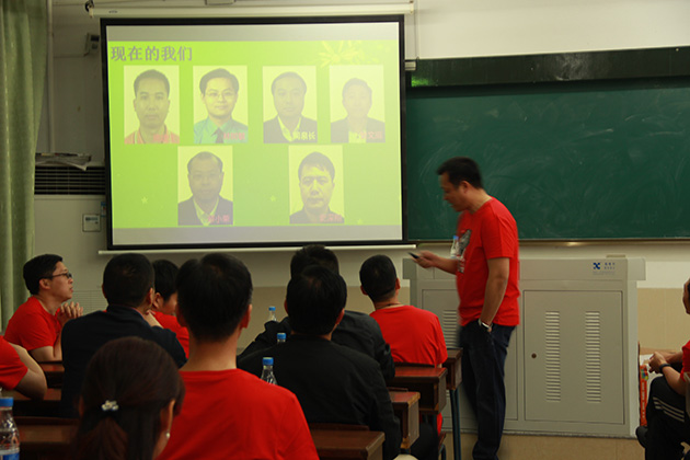第一部分的主题是:现在的我们。主持人首先上台播放了班上各位同学现在的证件照,照片上的人已至中年,却依然精神抖擞。同学们兴致高昂地辨认照片,气氛活跃热闹。