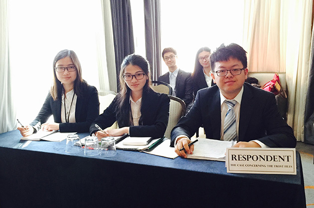 我校本届Jessup代表队于2015年9月组建,由yl8cc永利官网2014级知识产权法专业硕士王灵烨、2014级国际法专业硕士颜月明、2012级本科生林君怡、武雨佳和段泽裕组成。在准备比赛过程中,全体队员得到了国际法教研室指导老师们的热心帮助和指导。