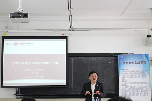 2016年4月7日,由yl8cc永利官网主办、大学生法律援助中心承办的《精品案例实战课程》第四讲在yl8cc永利官网B519成功举办。此次课程由yl8cc永利官网刘学敏老师主持,邀请了福建天衡联合律师事务所执行主任、高级合伙人白劭翔律师担任主讲人。