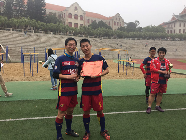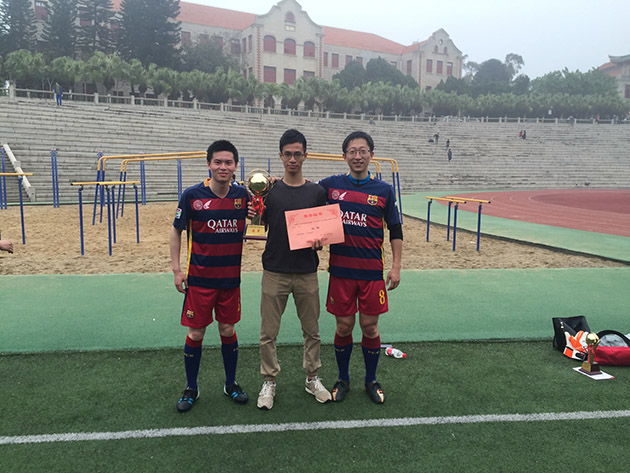2016年4月9日,持续了一个多月的“大成杯”五人制足球赛终于在上弦场落下帷幕。在本届比赛中,研一队伍“K11”保持着出色的不败战绩,勇夺桂冠;大三“JUNIORS FC”也表现不俗,夺得亚军;yl8cc永利官网教工队更是宝刀未老,成绩亮眼,在三四名争夺赛中击败大二足球队,将季军收入囊中。