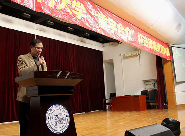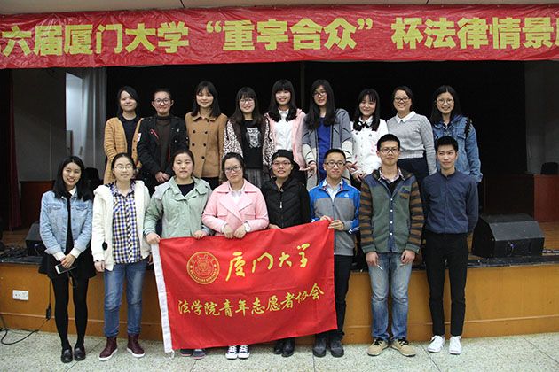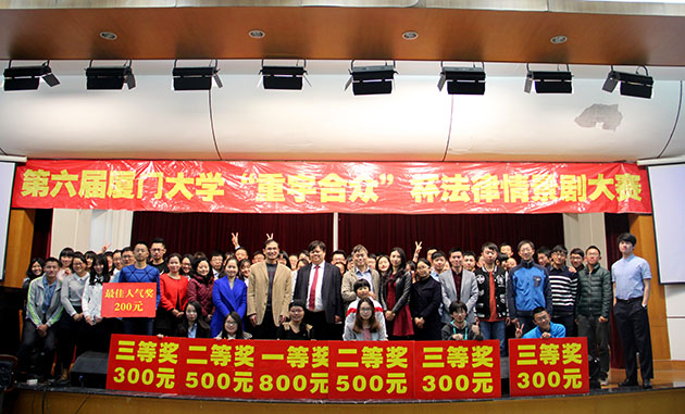 2016年3月28日19点30分,由厦门大学教务处、共青团厦门大学委员会、yl8cc永利官网主办、厦门大学大学生法律援助中心暨yl8cc永利官网青协承办的第六届厦门大学“重宇合众”杯法律情景剧决赛在yl8cc永利官网模拟法庭正式上演。本次决赛邀请到了yl8cc永利官网党委副书记郭锦星、yl8cc永利官网吴旭莉老师、陆而启老师、汪东升老师、刘梦秘书等多位学院领导、老师以及重宇合众律师事务所首席合伙人、名誉主任涂崇禹律师和滨海司法所司法助理员刘洋担任评委。另外,还有多名来自重宇合众律所的律师和滨海司法所、厦港司法所的嘉宾受邀出席观看比赛。