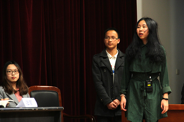 正式比赛由来自嘉庚学院的酷一点的队开场,一出创意十足的包公探案穿越剧使现场气氛迅速热烈起来。紧随其后的我是大明星队则借由物业管理费合同引出了发生法律纠纷后如何合理救济的问题。第三组翻滚的丸子队将场景设定在外国法庭,通过精彩的冲突表演,表现了面对法律与情感的纠葛时不同人的选择。