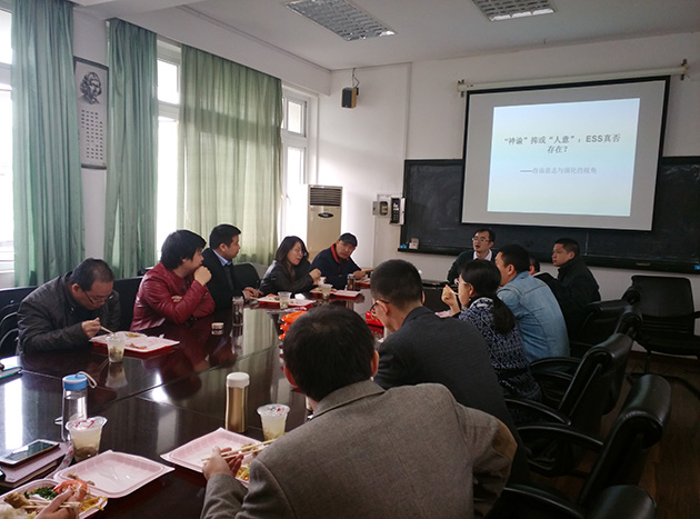 12月21日中午12:00,yl8cc永利官网青年教工协会第三次学术午餐会在B521顺利举行。本次午餐会的报告人是yl8cc永利官网吴旭阳老师。吴老师以“神谕抑或人法:演化稳定策略的本质思考——自由意志和演化的视角”为题,给yl8cc永利官网“青椒”们带来了丰盛的学术午餐。yl8cc永利官网的十五位老师参与了此次学术交流会。