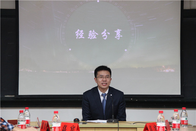 高斌老师作了讲座的致辞,对学长、学姐重返母校,与同学们分享成功经验表示感谢,同时也衷心期望各位同学从讲座中有所收获、有所启迪。在经验分享环节,孙国锋学长幽默诙谐地为同学们分享了他的创业和求职经历,告诉我们:不断挖掘自身潜能,端正求职态度,持之以恒,我们也能获得成功;在求职中,把握机会、争取机会、创造机会,千万不能坐等。紧接着,孙国锋学长站在银行招聘考官的角度为同学们的求职就业提出诚恳建议,他指出,在面试中求职者应该注重细节,应当将自己最突出的一面展示出来,用自己的热情感染考官。在知识积累方面,他强调在校时我们需要不断提升人文素养,掌握基本的财务金融知识。最后,孙国锋学长还为我们分享了他的工作准则。
