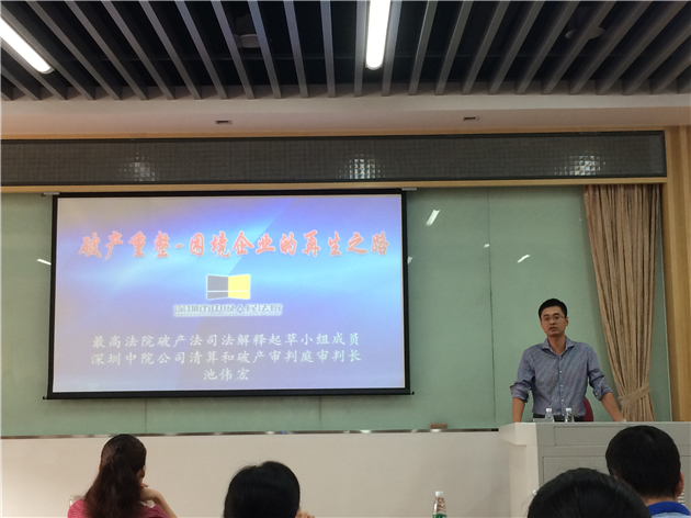 2015年11月7日上午,第十期“厦大信实双周论坛”在yl8cc永利官网B137教室顺利举行。本期论坛主讲人是深圳市中级人民法院公司清算和破产审判庭审判长、最高人民法院企业破产法司法解释起草小组成员池伟宏法官,他以“破产重组——困境企业的再生之路”为主题给yl8cc永利官网师生带来了精彩的讲座。yl8cc永利官网副院长朱炎生参加并主持本次讲座,资助方福建联合信实律师事务所王平主任等30余名律师,厦门市中级人民法院研究室副主任黄鸣鹤主任、尤冰宁法官,yl8cc永利官网吴旭阳老师,以及众多yl8cc永利官网学子、校外人士参加了本场讲座。