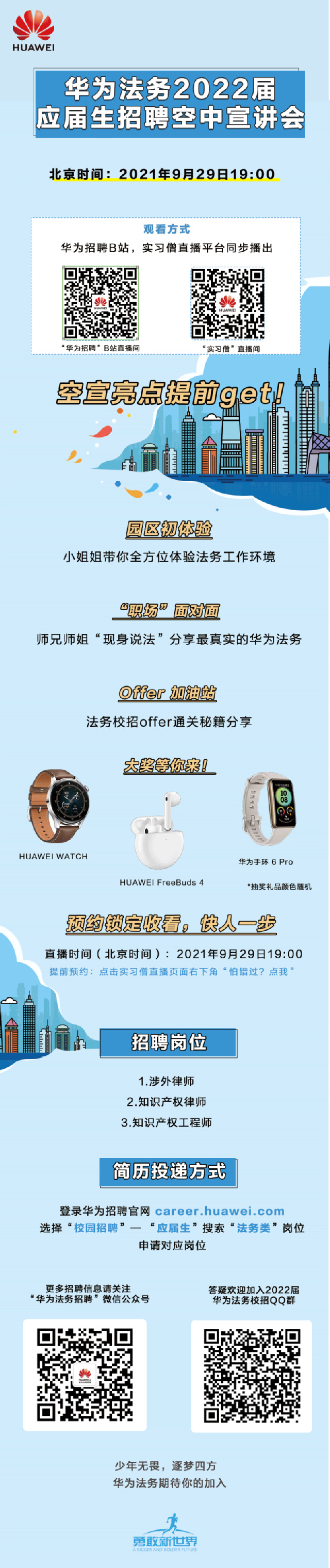 【招聘信息】华为法务2020届应届生招聘空中宣讲会 发布人: yl8cc永利官网 周晓牧 | 发布时间: 2021-09-28 | 阅读数: 信息来源:厦门大学学生创业就业指导中心 原文链接:https://jyzd.xmu.edu.cn/2021/0927/c18712a439849/page.htm
